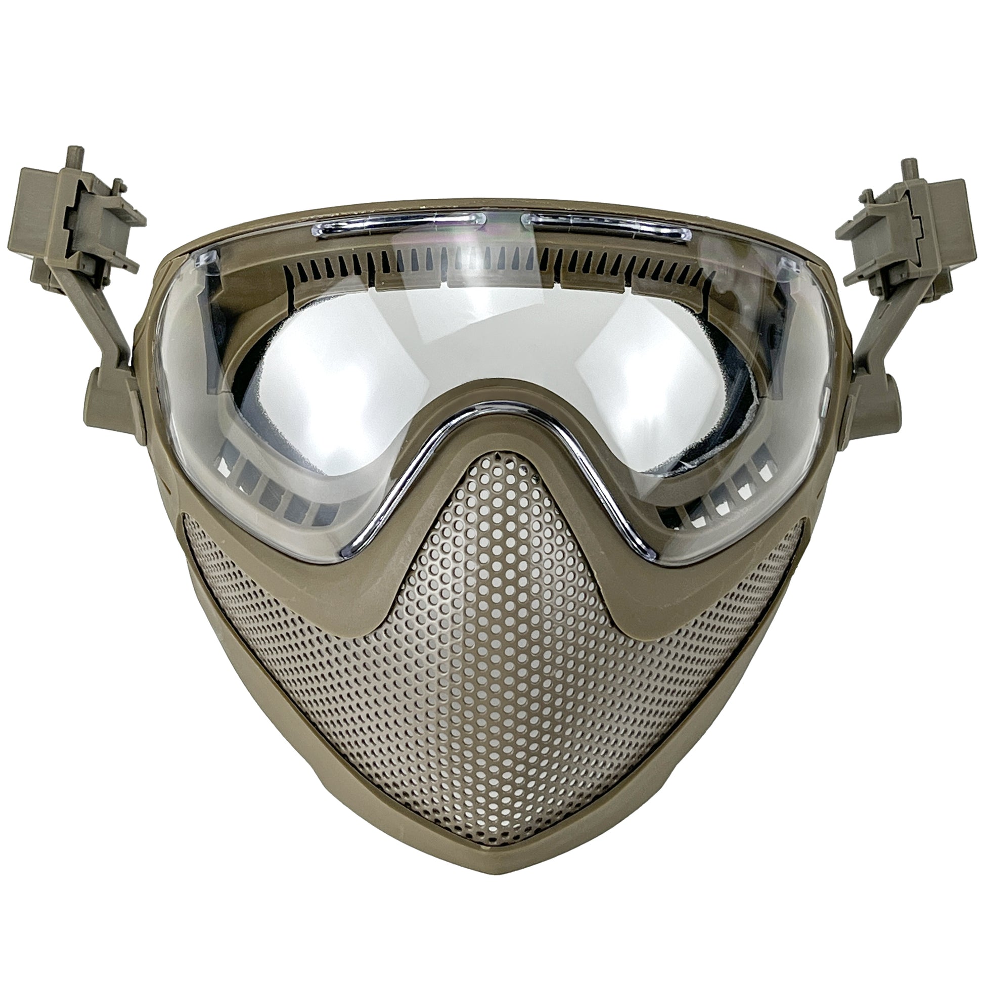 - { Rugged Impact Resistance } : Meets the strict standards of the ANSI Z80.3 ball drop test, capable of withstanding impacts up to 310FPS in extreme temperatures ranging from -10°C to 42°C, making it a dependable piece of airsoft protective gear.